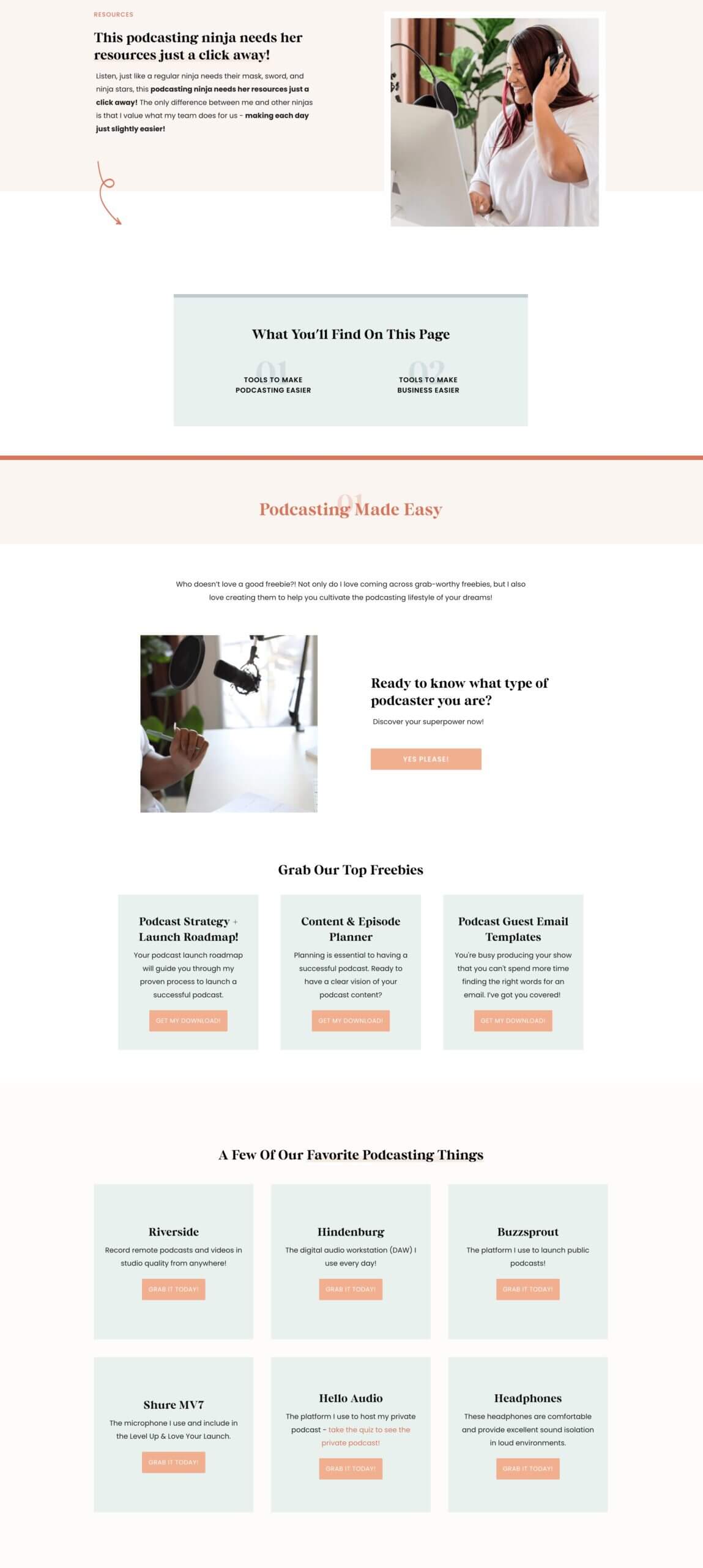 You know how entrepreneurs and clients are always chatting about the best tools for small business owners? Visitors to your website are curious about that, too! A Resource page is a corner of your website where you can share your branded freebies, favorite tools you’re recommending on repeat, and the services you rely on to run your business.